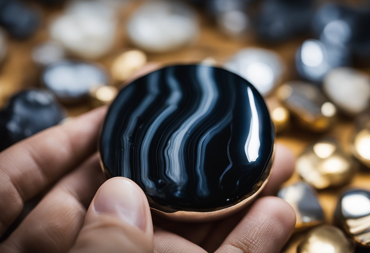 In summary, black agate is a variety of chalcedony that is characterized by its black color, fine-grained microcrystalline texture, and smooth and polished appearance. It has a chemical composition of SiO2 and is formed through the deposition of microscopic crystals of quartz in volcanic rocks. To care for black agate, it should be cleaned regularly with a soft cloth and mild soap and water, and stored away from harsh chemicals and extreme temperatures.